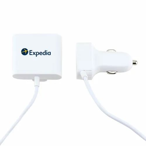 The Road Trip car charger provides all the power and charging ports (even one USB Type C port!) to keep your mobile devices charged while road-tripping! Features: - Front Seat Charging Ports with total 3.4 A Output: 2 x USB; 1 x Type C. Simultaneously charge 3 iPhones at full speed. - Back Seat Charging Ports with total 3.4 A Output: 2 x USB. Simultaneously charge an iPad and an iPhone at full speed - Cable Length: 6 Feet.