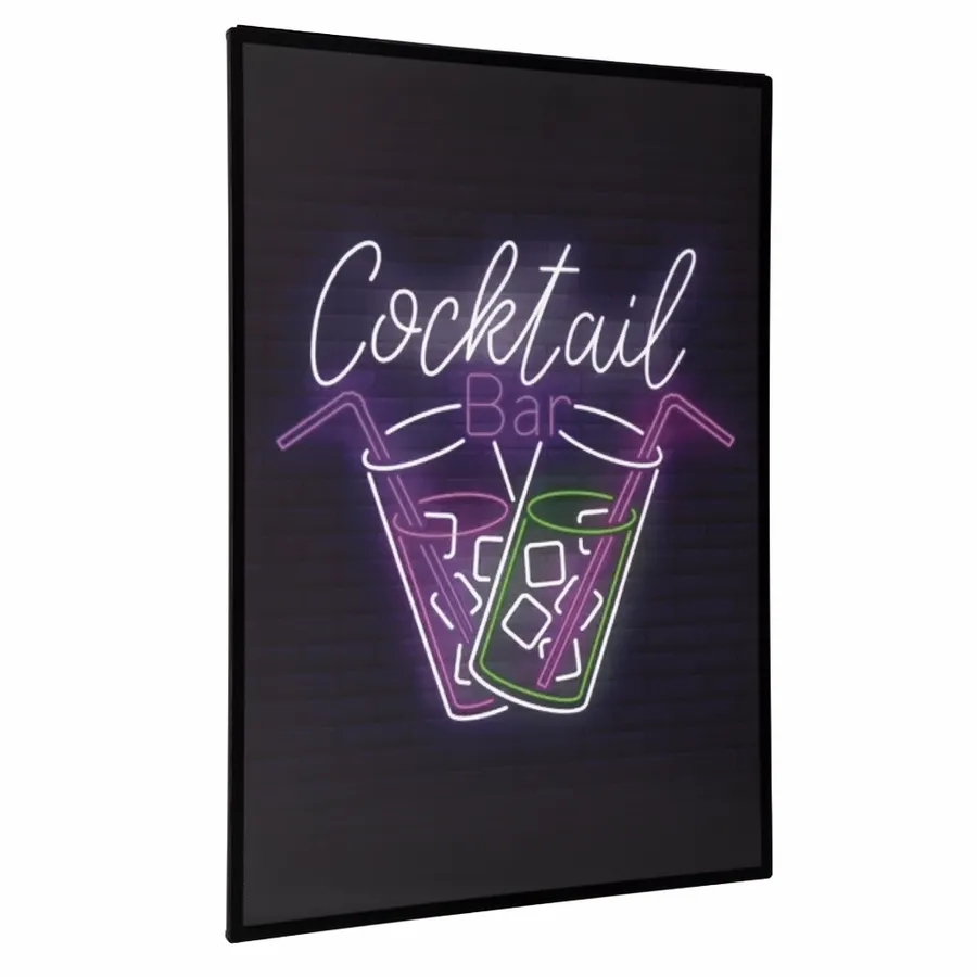 This slim aluminum-framed light box features a printed design illuminated by LED backlighting. With dark backgrounds and vibrant, neon-style artwork, it produces a glowing effect that closely mimics a traditional neon sign!