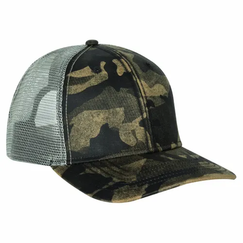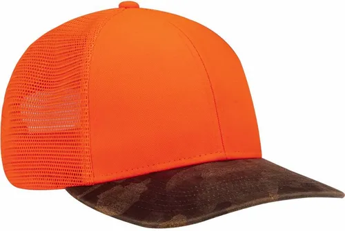 Front: 60% Cotton/ 36% Polyester/4% Polyurethane, Waxy Canvas Back: 100% Polyester, Classic Trucker Mesh Modern Fit: Structured, Low-profile, Slightly Curved Bill, Black Underbill Six-panel NO Sweat Moisture-wicking Sweatband Snapback Closure