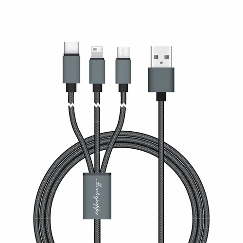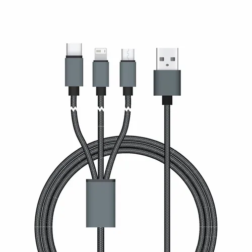 This sleek braided 3-in-1 charging cable covers all Smart Phones on the market. Featuring a micro USB, Type-C USB and a lightening connector for iPhones, Connect Reach supports simultaneous charging for 3 devices, all combined in one power cord. This extra-long, durable and stylish cable will charge all your devices while you are on the go or at home. No need to worry anymore about carrying multiple cables with you. This cable will allow you to freely use your device while charging another.