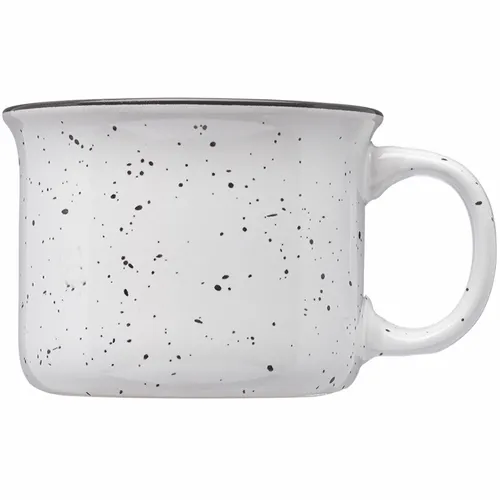 7.5 oz. Ceramic Coffee Mug. Made from Sturdy Ceramic. Tin Cup Style. Slightly Flared Top for Easier Drinking and Less Spills. C-Shaped Handle for Easy Grip. Speckles throughout Finish. Recommended Hand Wash Only