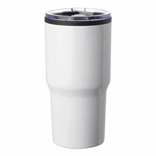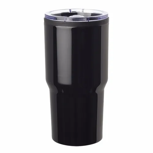 16 oz. Capacity. Clear Plastic Slider Lids. Plastic Interior Wall with Stainless Steel Outer Wall. EVA Bottom Pad
