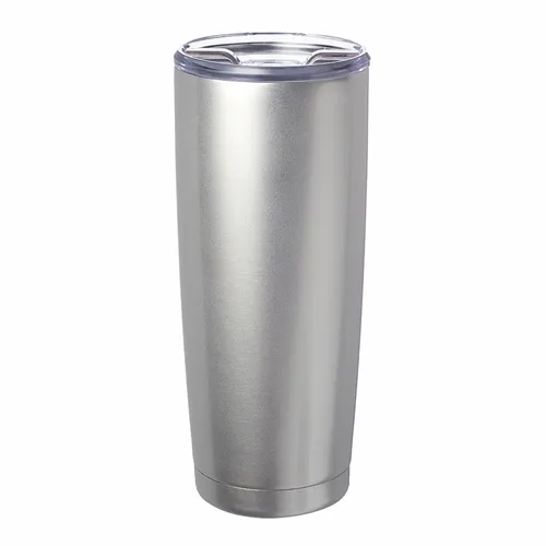 20 oz. Stainless Steel Travel Mug. Clear Plastic Sip Lid. Double Wall Vacuum Insulated. Keep Drinks Hot for up to Approx. 4 hours. Keep Drinks Cold for up to Approx. 6 hours. Note: Laser Engraving is offered for Front Side only