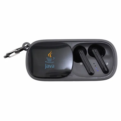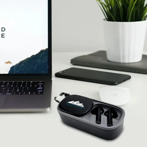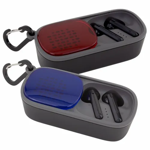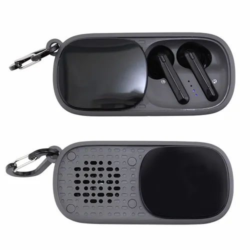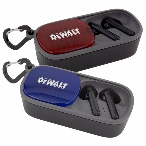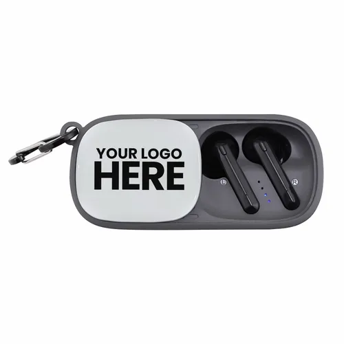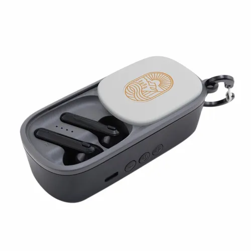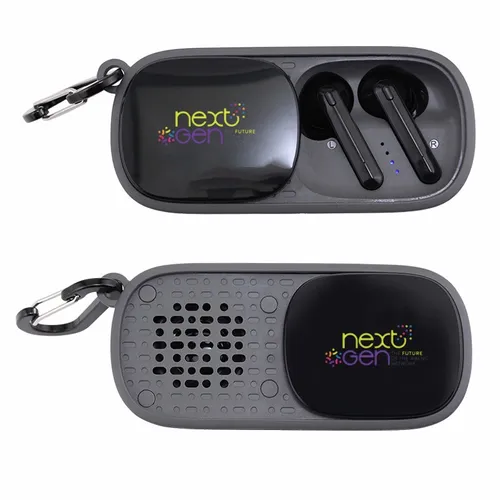 The Duet Wireless Earbuds & Speaker is a fun audio device perfect for any team-building festive occasion. It's a wireless speaker that is also a cradle for earbuds stored inside. Easily access earbuds by sliding over the case-top panel. Clear and highly-visible full-color branding on the top of the case-top panel(1.5" x 1").