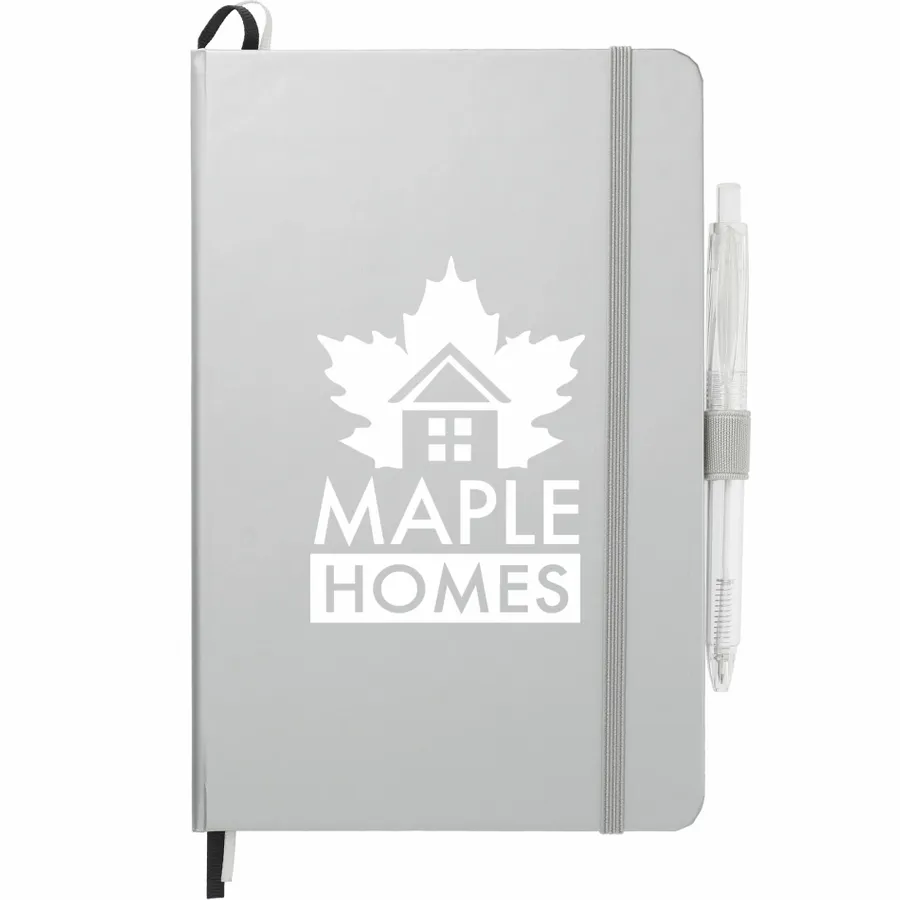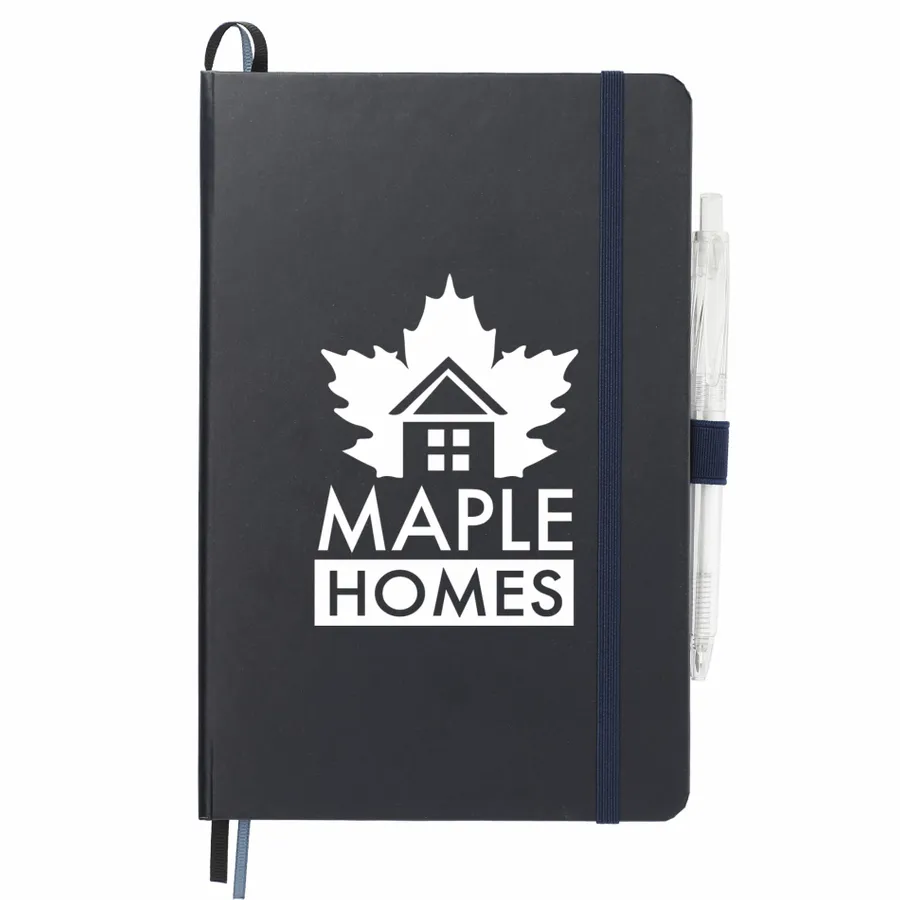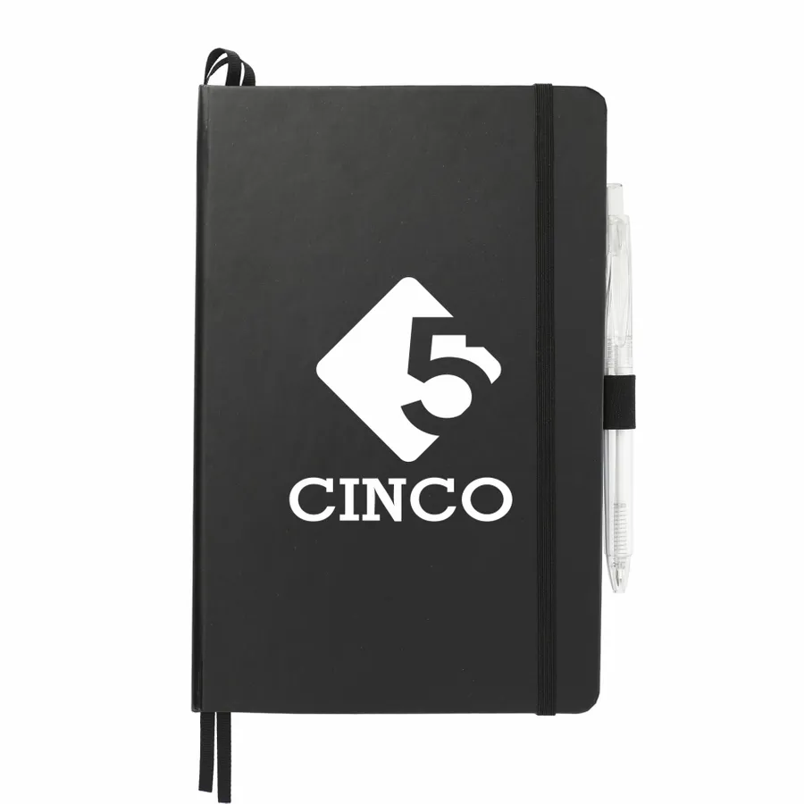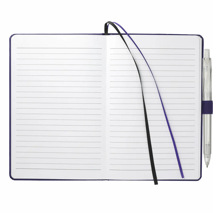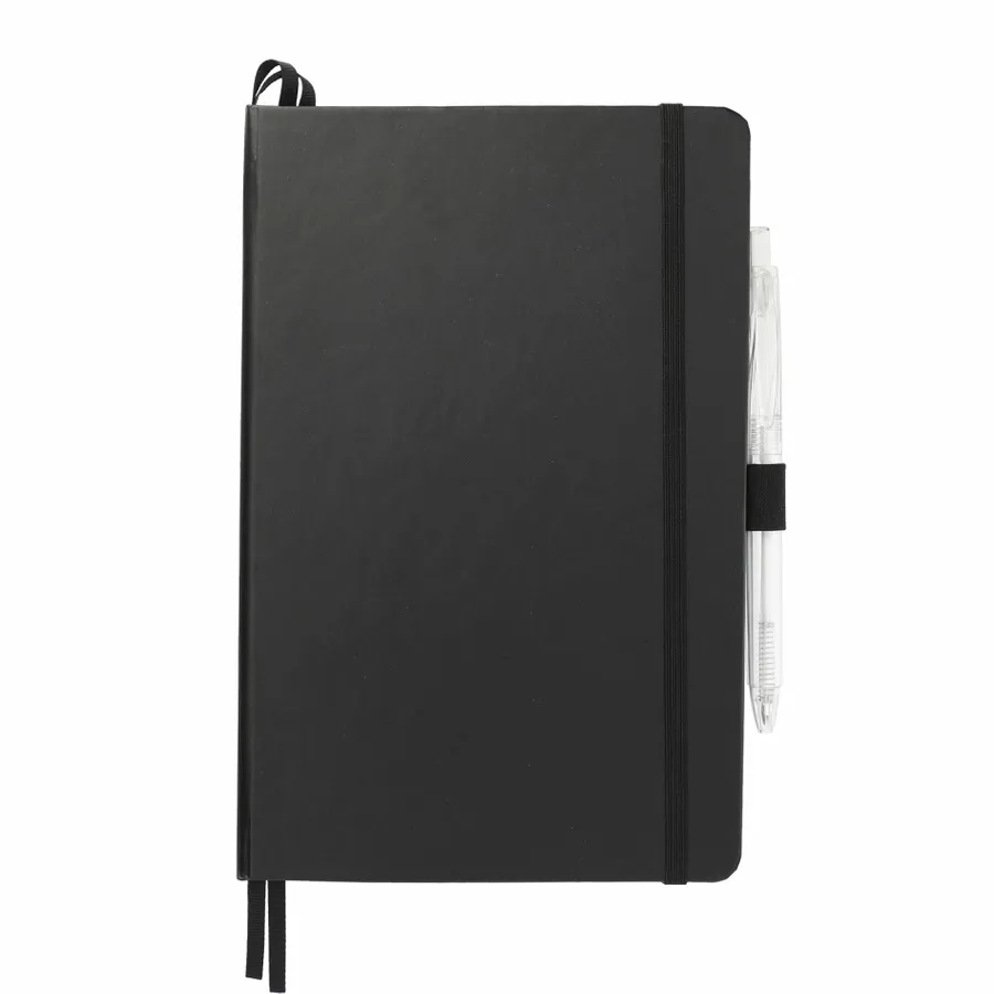 The 5.5 x 8.5 FSC Mix Bound Journal Set includes the 5.5 x 8.5 FSC Mix Bound Journal (2800-82) and FUNCTION RPET Quick-Dry Gel Pen (6003-29). The set features a FSC-certified paper cover with 80 sheets of white FSC-certified soy based ink lined paper. Includes color-matching elastic closure, pen loop and ribbon page marker. Through a partnership with 1% For The Planet, one percent of sales of all EcoSmart products are donated to environmental nonprofits.