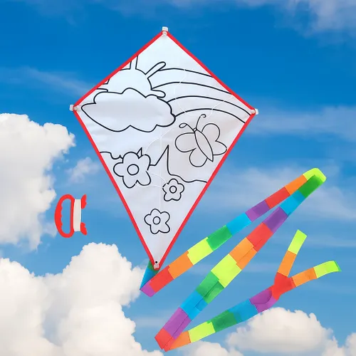 Let your creativity soar with the DIY Coloring Kite! Made from sturdy, tear-resistant ripstop polyester fabric, this kite is ready for you to personalize.