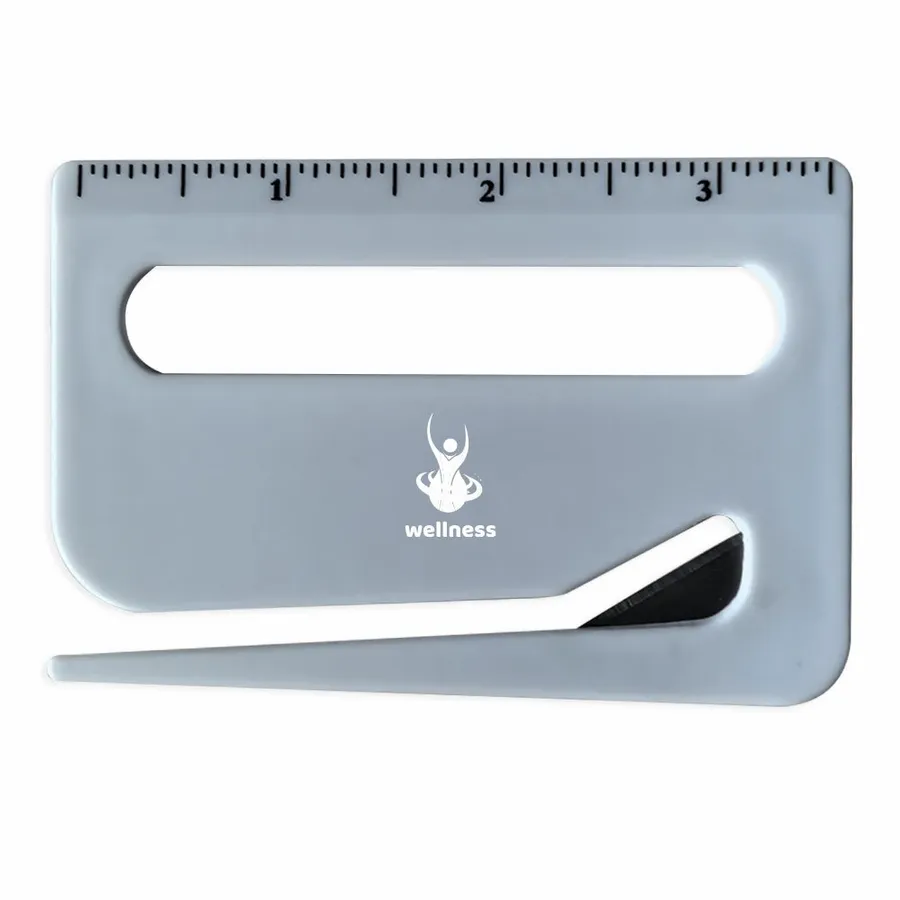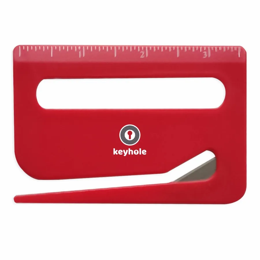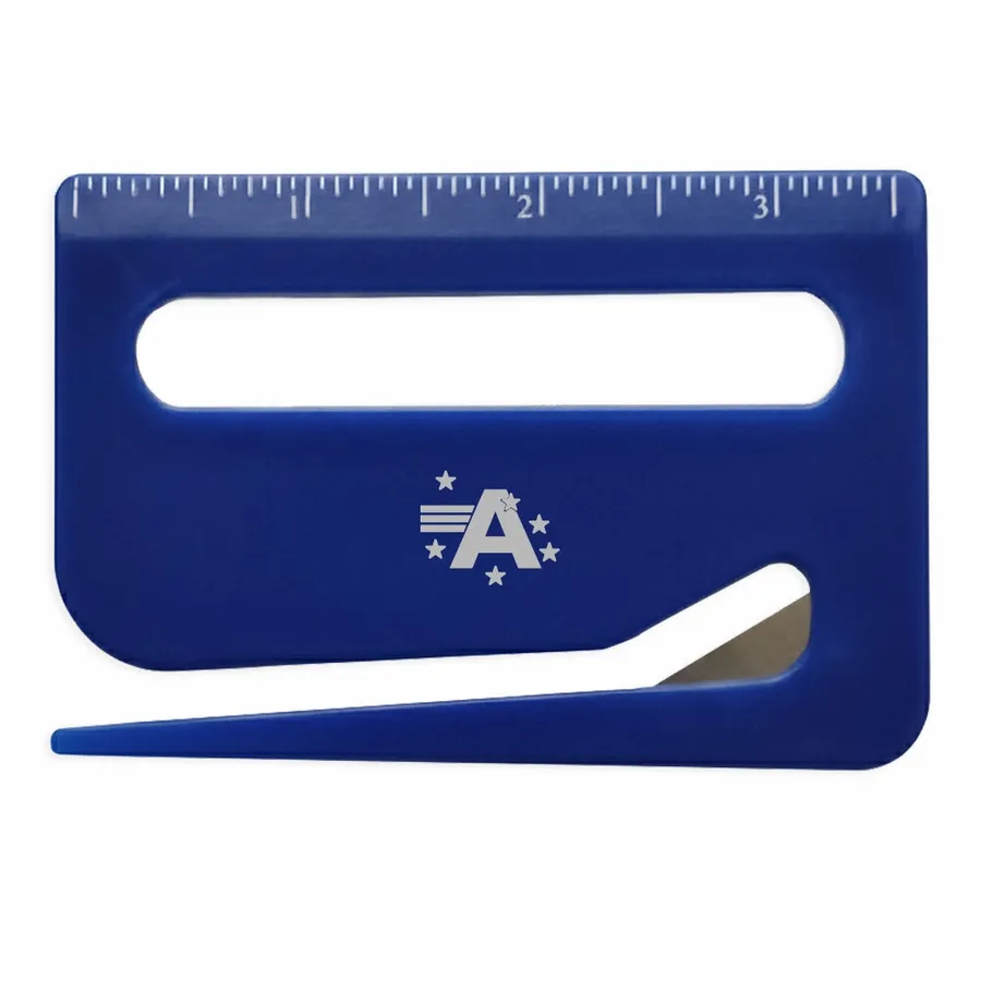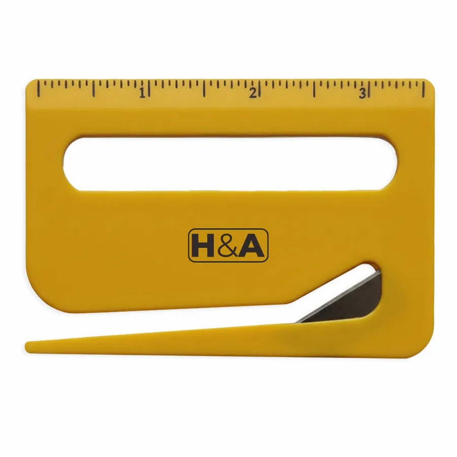 Featuring easy-to-read measurement markings and a hidden metal blade, this handy plastic tool is perfect for offices, schools, or trade show giveaways.