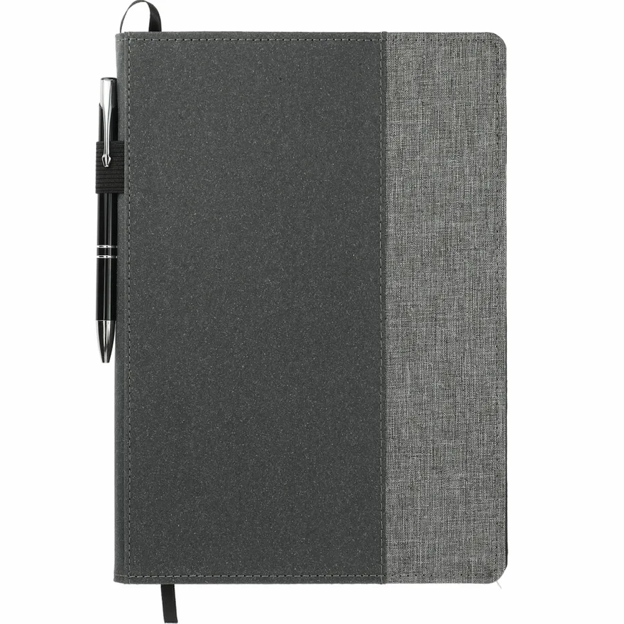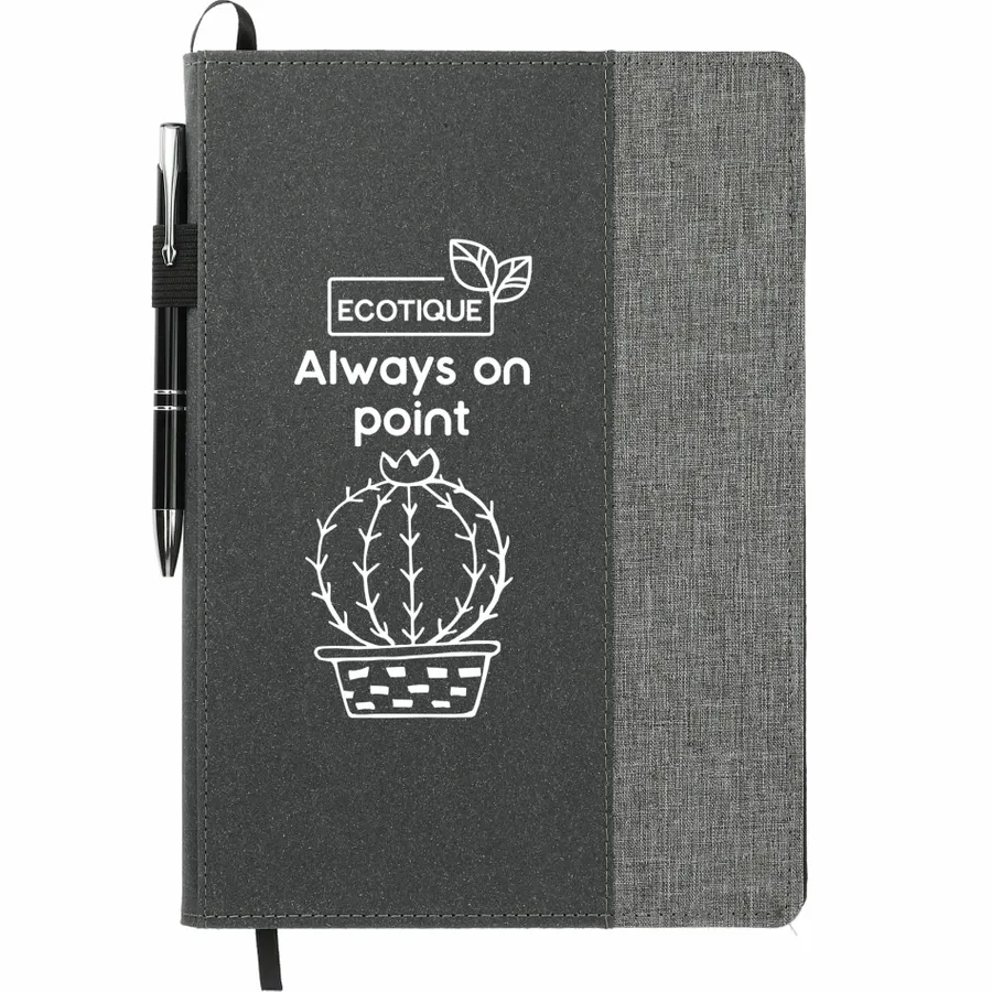 The 7 x 10 FSC Mix Reclaim RPET Refillable Journal is constructed from recycled materials and can be refilled as needed, providing a more sustainable way to record your notes and ideas. It features a ribbon page marker to hold your place and has a convenient elastic pen loop on its spine. This rPET notebook has a recycled leather cover and comes with 80 sheets of FSC Mix lined paper measuring 6 x 9. Plus, a partnership with 1% For The Planet ensures that one percent of your purchase is donated toward supporting nonprofit environmental protection groups.