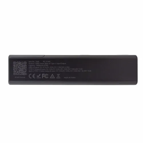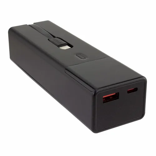 A laptop and smart phone power bank with a built-in cable for input/output. A perfect blend of function and size. It's the smallest power bank with 100W output to charge all laptops with a type-C power port. Specifications: Battery: LI-ION Battery USB-A Output: 5V /2.1 A;9V /2.0A; 12V / 1 .SA; 1 0V /2.25A TYPE-C Output & Input: 5V /3.0A;9V /3.0A; 12V /3.0A; 15V /3.0A;20V /5.0A Built-in TYPE-C Cable Output & Input: 5V /3.0A;9V /3.0A; 12V /3.0A; 15V /3A;20V /5.0A Capacity: 10