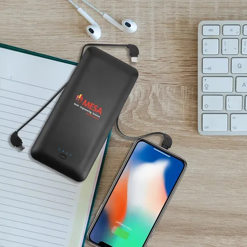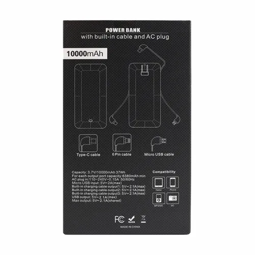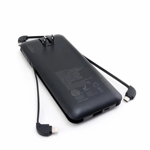 - Charge All 10k - 10,000 mAh Power Bank with Integrated Charging Cables and AC Plugs