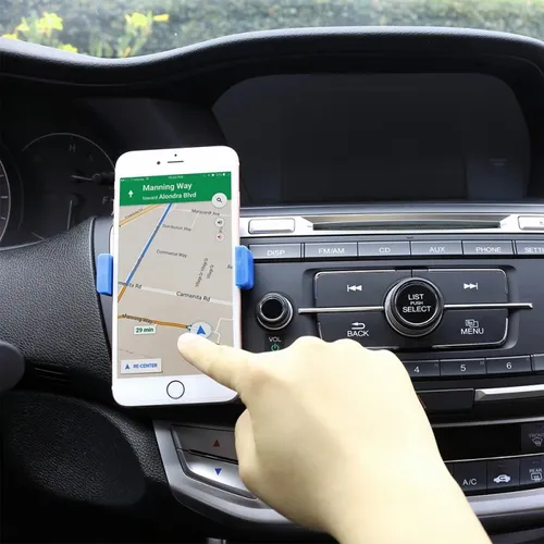 This Cell Phone Car Mount allows you to stand your phone up in your car for hands free calling. Fits on the air vent of your car.