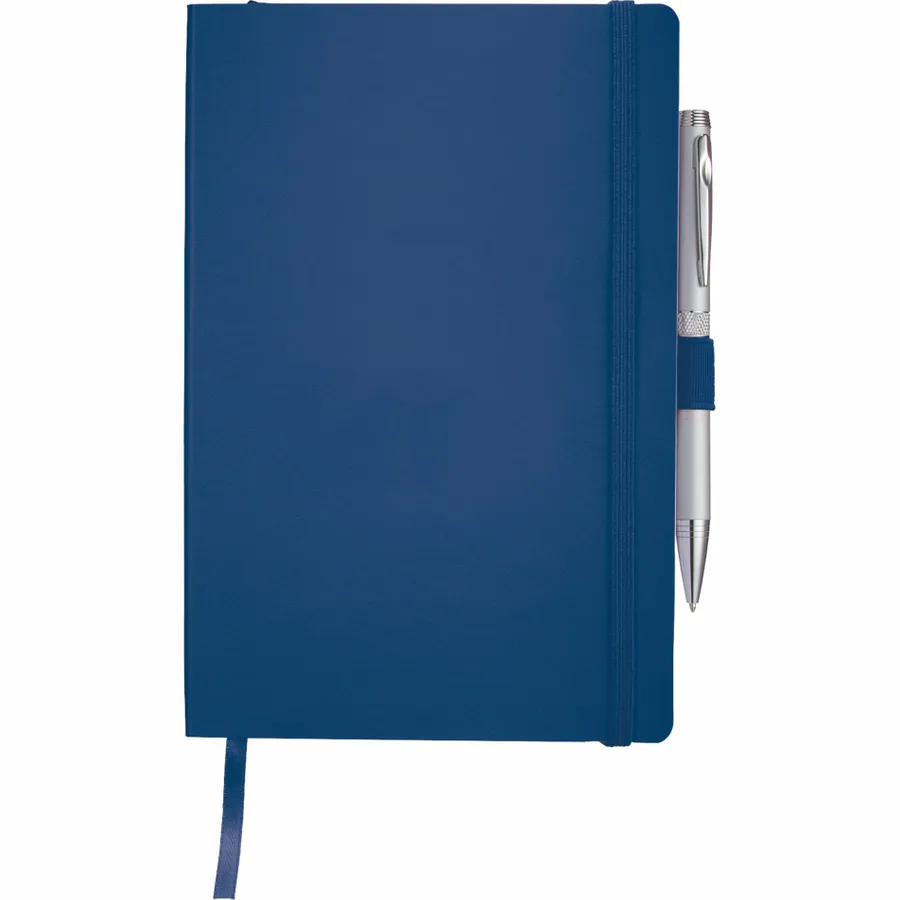 The 5.5 x 8.5 FSC Mix Nova Soft Bound Journal features a soft cover with built-in elastic closure. This specialty notebook offers a ribbon page marker, expandable accordion pocket and pen loop. The Nova Soft Bound Journal includes 96 sheets of lined white FSC Mix paper. Pen not included.