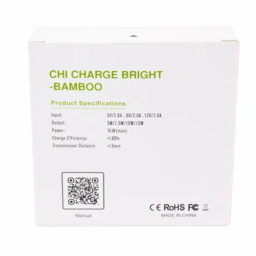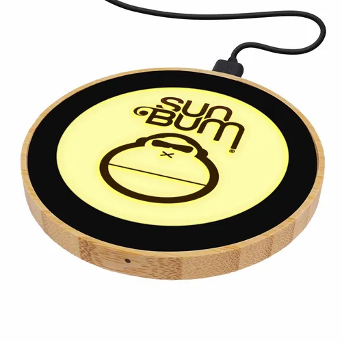 Bamboo style fast 15W wireless charging pad with bright and full-color logo. Decorated with a light up graphic Comes with 6 ft-long cable included in the package.