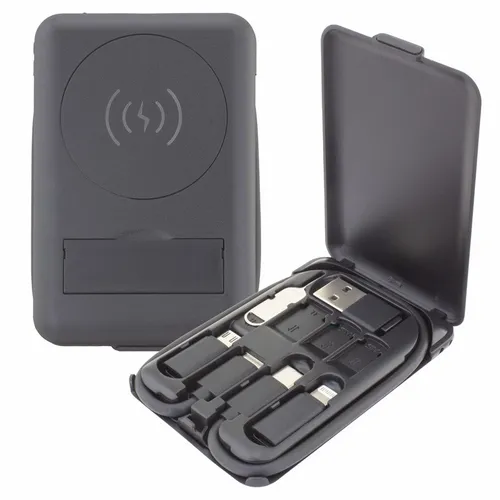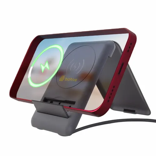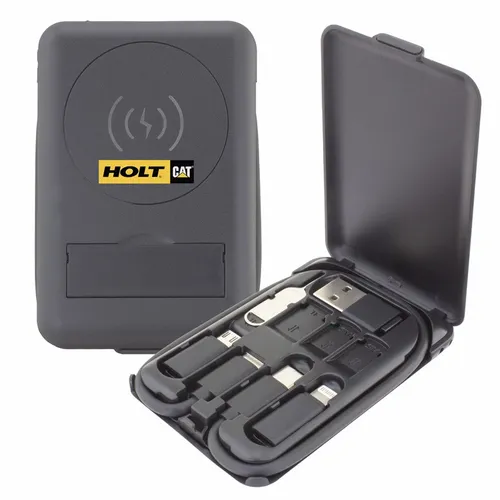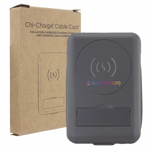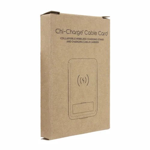 Chi-Charge Cable Card - collapsible wireless charging stand and charging cable carriers
