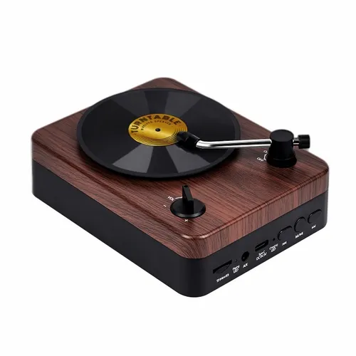 The wireless Turntable Speaker adopts a classic retro design, combined with perfect sound quality to bring you an excellent audio experience. The Turntable Speaker is packaged in a gift box and can be decorated with a custom decal on the faux vinyl record and your logo printed in full color on the side of the Turntable Speaker.